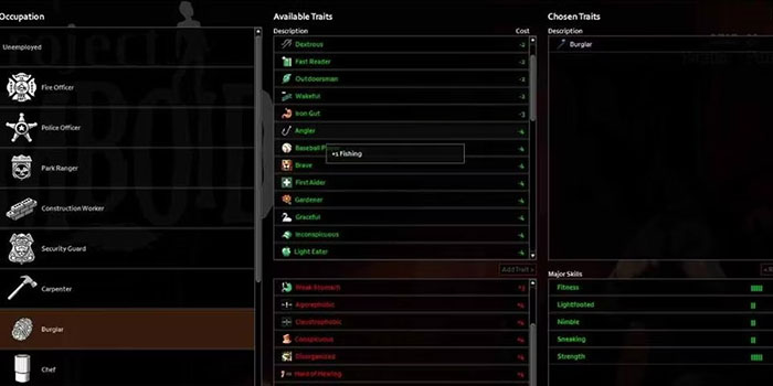 Sau khi người chơi đã hiểu rõ về cách Project Zomboid diễn ra, có thể dễ dàng nhận thấy một số ngành nghề sẽ được ưa thích hơn những nghề khác. Điều này có thể khiến dòng chảy của trò chơi bị tắc nghẽn nếu người chơi lặp đi lặp lại một chiến lược với hy vọng thành công với cách thức tương tự.