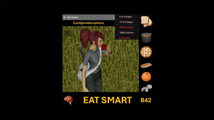 Khi bật Eat Smart, người chơi sẽ thấy mức độ đói chính xác của nhân vật, cũng như lượng calo cần thiết cho ngày hôm đó. Khi đã quen với nó, game thủ có thể chọn phiên bản tích hợp, giúp các chỉ số mới này hiển thị cùng với menu hành động Eat. Các con số cụ thể đều liên quan đến đặc điểm và quá trình trao đổi chất của nhân vật, nhưng mọi người có thể tùy chỉnh các thông số theo ý muốn. Người chơi nên kết hợp nó với Drink Smart, bổ sung mức độ khát nước cụ thể.