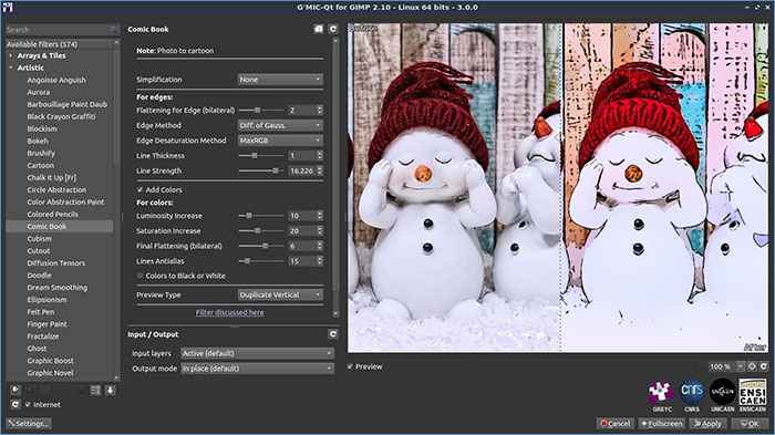 G’MIC là một trong những phần mở rộng phổ biến nhất cho GIMP, cung cấp hàng trăm bộ lọc và hiệu ứng có hỗ trợ AI với các tính năng nổi bật: