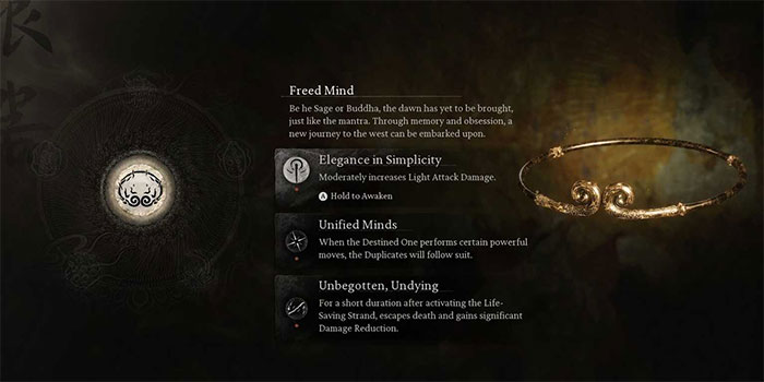 Freed Mind là Relic cuối cùng mà người chơi có thể nhận được, mở khóa khi hoàn thành cốt truyện chính của Black Myth: Wukong và vào New Game+. Tuy nhiên, việc mở khóa các Perk của nó có thể là một thách thức, vì nó yêu cầu người chơi phải đạt được kết thúc bí mật của trò chơi. Lý do chính khiến Relic này không được xếp hạng cao hơn là cần phải đầu tư nhiều thời gian để có được nó.