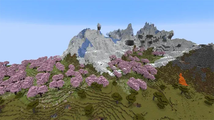 Seed này mang lại một khung cảnh thiên nhiên tuyệt đẹp tại biome Cherry Grove, nằm cạnh dãy núi tuyết hùng vĩ. Một phần nhỏ của rừng hoa anh đào còn được bao quanh hoàn toàn bởi những đỉnh núi phủ tuyết trắng, tạo nên bầu không khí thanh bình và lãng mạn.
