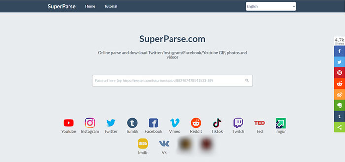 Với SuperParse, mọi người có thể download video từ các nền tảng phổ biến như Twitch, Facebook, YouTube, Vimeo, Reddit, TED, Tumblr, IMDB,... Người dùng sẽ cảm thấy như quen thuộc với trình tải xuống video này nếu đã sử dụng SaveFrom.net trước đây.