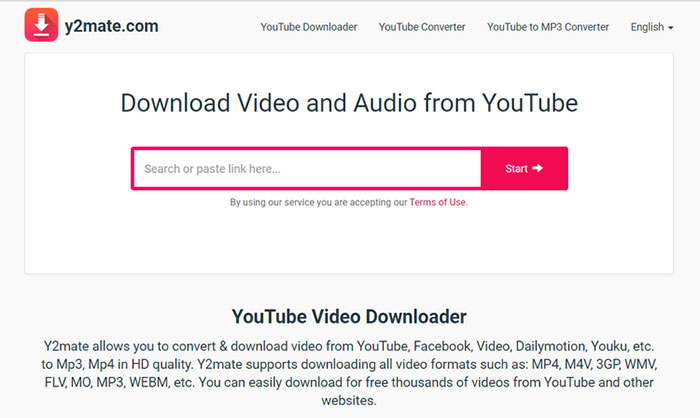 Y2mate cũng cho phép tải xuống các tệp âm thanh từ video trực tiếp ở định dạng MP3 hoặc M4A. Nó cũng hỗ trợ nhiều định dạng video, bao gồm MP4, M4V, 3GP, WMV, FLV, MO, MP3, WEBM.