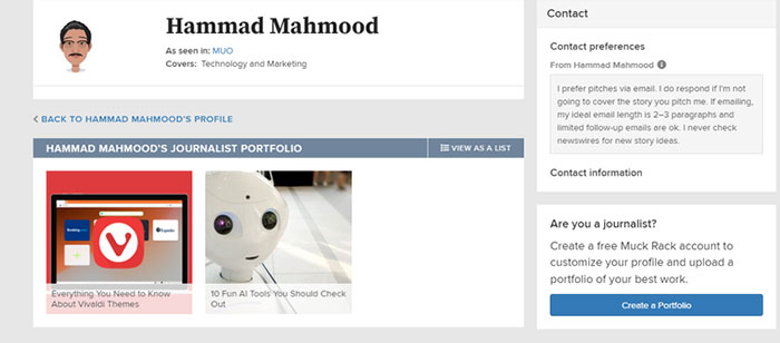 Hơn nữa, người dùng có thể yêu cầu và nhận huy hiệu xác minh từ nhóm Muck Rack. Việc tạo một portfolio bằng Muck Rack không yêu cầu bất cứ thứ gì ngoài một ít thời gian.