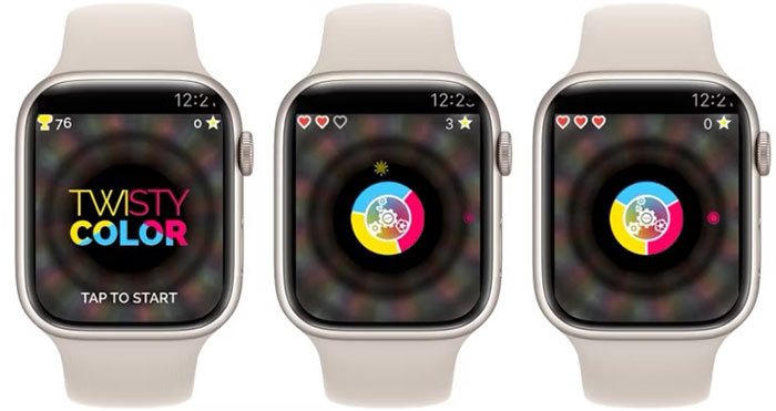 Twisty Color giới thiệu một cách thú vị khác để sử dụng Digital Crown. Trò chơi yêu cầu thu thập càng nhiều bóng càng tốt bằng cách xoay Twister để có màu tương ứng.