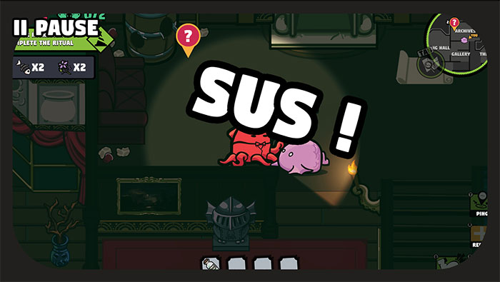 Trong Suspicious có hai giai đoạn xen kẽ, ban đêm, khi kẻ sát nhân bí mật tiêu diệt người chơi khác và ban ngày, những người còn sống sót sẽ tranh luận về danh tính của tên phản bội và bình chọn để loại bỏ hắn.