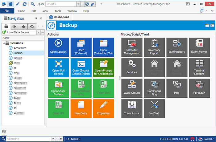 Remote Desktop Manager là một chương trình truy cập máy tính từ xa mạnh mẽ cung cấp các giải pháp có thể mở rộng cho các doanh nghiệp lớn. Nó tương thích với cả thiết bị Android và iOS và đi kèm với nhiều tính năng bảo mật ấn tượng. Nó chứa các tính năng bổ sung thú vị như tích hợp với trình quản lý mật khẩu, kiểm soát truy cập dựa trên vai trò và xác thực hai yếu tố.