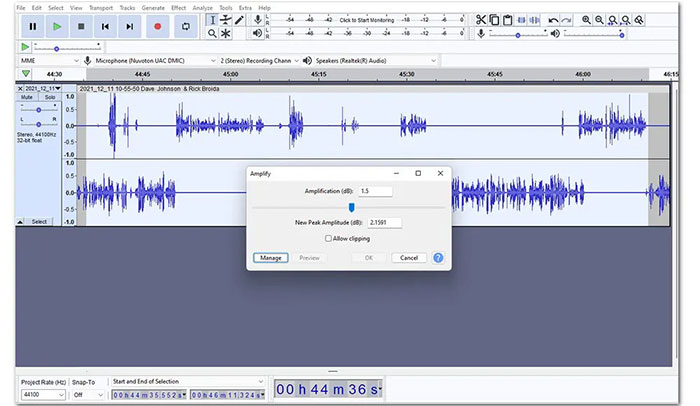 Audacity là một trình ghi âm và chỉnh sửa âm thanh mã nguồn mở miễn phí. Nó cung cấp khả năng tương thích đa nền tảng và có thể chạy mượt mà trên nhiều hệ điều hành. Ngoài việc kiểm soát khuếch đại âm lượng, nó còn cung cấp nhiều khả năng chỉnh sửa phong phú khác như cắt các đoạn âm thanh, hợp nhất nhiều tệp âm thanh thành một, giảm tiếng ồn, thay đổi nhịp độ, hiệu ứng âm thanh,...