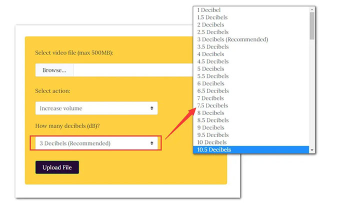 Đây là một công cụ thay đổi âm lượng trực tuyến vậy nên nó thuận tiện hơn. Tuy nhiên nó cũng có một yêu cầu về độ ổn định của Internet và kích thước tệp quá trình tải lên, xử lý và tải xuống không bị cản trở. Vì vậy, phương pháp này được khuyến khích hơn để xử lý các tệp có kích thước nhỏ. VideoLouder chỉ hỗ trợ AVI, MPEG, MPG, MP4, MOV, XVID và kích thước tệp video để xử lý được giới hạn ở 500 MB mỗi lần.