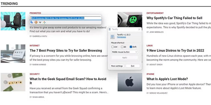 Textify là một công cụ hỗ trợ sao chép văn bản, có thể biến bất kỳ văn bản nào trên màn hình thành văn bản thuần túy, có thể sao chép và dán như bình thường, đặc biệt hữu ích khi duyệt qua các trang chặn copy.