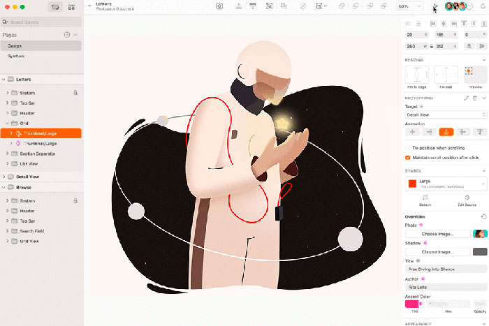 Nền tảng này cũng được trang bị các công cụ cộng tác linh hoạt để thiết kế đồ họa nổi bật. Cho dù đó là các biểu tượng chính xác đến từng pixel hay là khái niệm về một sản phẩm hoàn toàn mới, ứng dụng này đều có tất cả các công cụ cơ bản mà mọi người cần để tạo ra những tác phẩm tuyệt vời. Ứng dụng này cũng bao gồm các thư viện dùng chung, các thành phần và công cụ có thể tái sử dụng để giữ mọi thứ được sắp xếp hợp lý và mở rộng quy trình thiết kế.