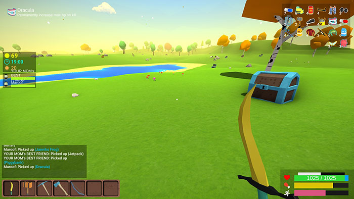 Người chơi sẽ spawn gần túp lều mà ở đó chứa Kiếm Mithril, Mũ bảo hiểm thép, Giày và Cuốc. Ngoài ra còn có nguồn cung cấp xu, gỗ, than và hai bản đồ.