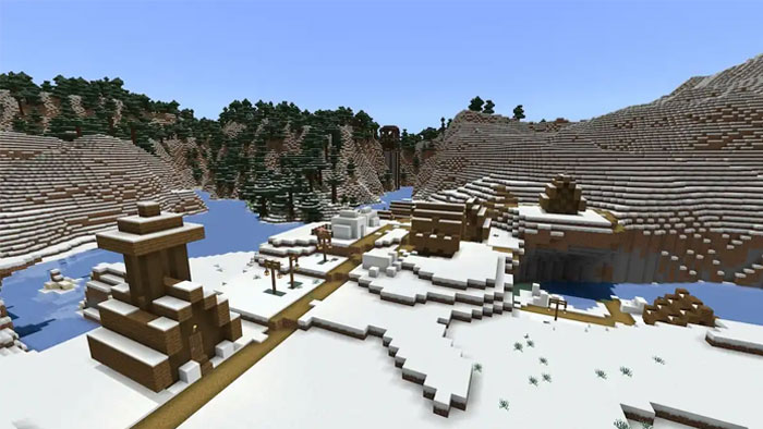 Gỗ tối màu và đèn lồng sáng của Snowy Village tương phản đẹp mắt với dòng sông đóng băng và lớp tuyết nơi nó được xây dựng. Nếu nhìn xa hơn xuống sông, game thủ sẽ thấy một Pillager Outpost cao chót vót được xây dựng dựa vào một trong những bức tường của thung lũng sông. Nó đủ xa để không đe dọa dân làng nhưng đủ gần để sử dụng cho việc khai thác tài nguyên bất cứ khi nào người chơi cần.