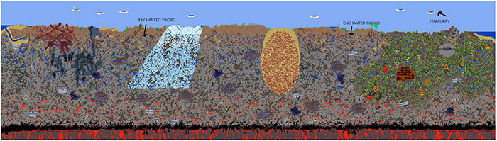 Hãy chắc chắn tạo một thế giới Medium và chọn Crimson làm biome tà ác khi dùng seed này. Mặc dù không có tên chính thức, nhưng với seed này, người có thể rất dễ dàng tìm được hai thanh kiếm phép Enchanted Swords, cùng với Starfury - một vũ khí mạnh mẽ có khả năng triệu hồi các ngôi sao rơi từ trên trời xuống.