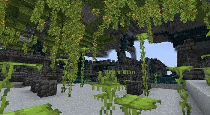 Tuy nhiên, seed này là điểm trung gian giữa 2 biome này. Nó spawn người chơi gần với một Thành phố cổ trải rộng trên một Lush Cave và một Deep Dark. Với các shader tốt nhất cho Minecraft, seed này trông không khác gì một cấu trúc mới trong trò chơi.