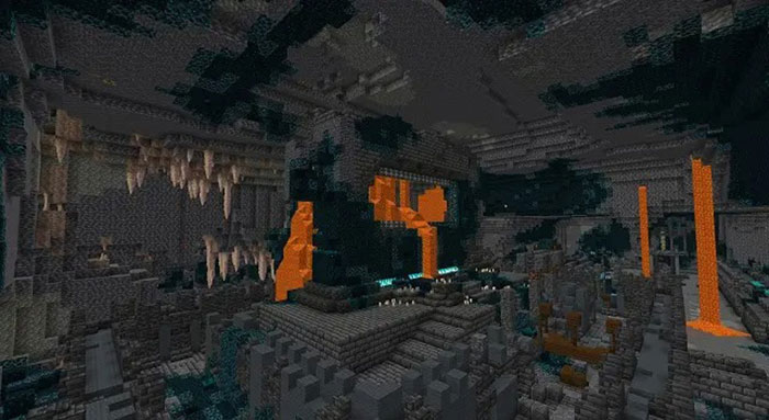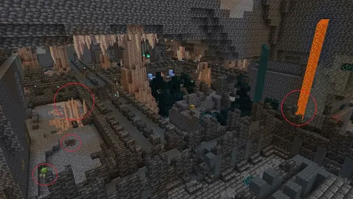 Theo thiết kế, phần nguy hiểm duy nhất khi đến thăm Ancient City được cho là Warden trong bản cập nhật Minecraft 1.19. Nhưng đó không phải là trường hợp của seed này. Nó sinh ra một thành phố cổ được kết nối với một hang động đá nhỏ giọt. Do đó, người chơi cũng nhận được các đặc điểm nguy hiểm của những quần xã sinh vật khác, ví dụ như dung nham, mob thù địch và những viên đá nhỏ giọt sắc nhọn. Trừ khi thật sự can đảm và đã chuẩn bị đầy đủ mọi thứ, người chơi thật sự nên tìm đến một thành phố cổ khác để thử vận may của mình.