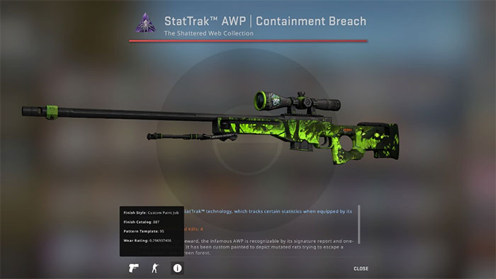 Đối với AWP, có rất nhiều lựa chọn đắt đỏ nhưng khẩu súng màu xanh lá cây tươi sáng này có thể được mua thử nghiệm thực địa với giá chỉ khoảng 80 USD. Và rất có thể nó sẽ tiếp tục tăng giá vì nó đã tăng hơn gấp đôi trong năm qua.