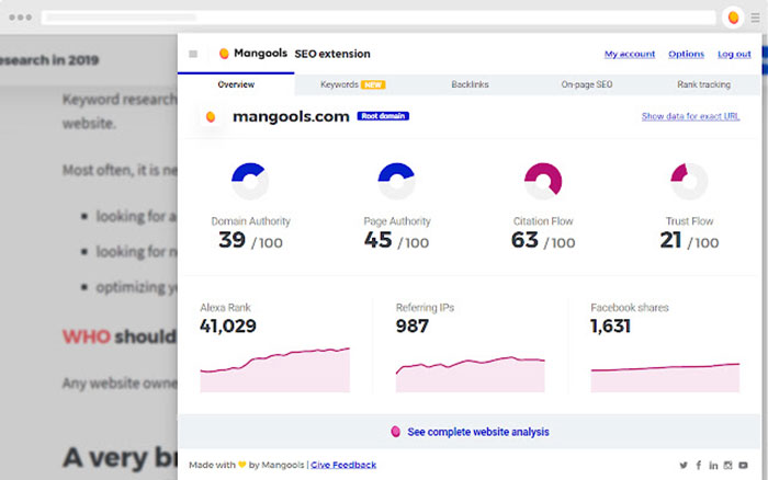 Điểm mạnh nhất của extension này là có thể sử dụng nó trên trang web của người khác để xem các yếu tố SEO đã giúp website đó có xếp hạng tốt. Nó hỗ trợ xem phác thảo và cấu trúc link của trang khác, mang đến một số gợi ý cho người dùng để phát triển nội dung trên website của mình tốt hơn.