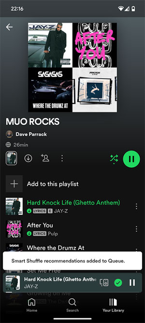 Mọi người đều biết việc có thể xáo trộn danh sách phát trên Spotify, nhưng thậm chí còn có thể thêm các bài hát bổ sung bằng Smart Shuffle. Tính năng này cho phép Spotify phát thêm các bài hát mà nó cho là phù hợp với danh sách phát, mang đến một cách dễ dàng để khám phá âm nhạc mới.