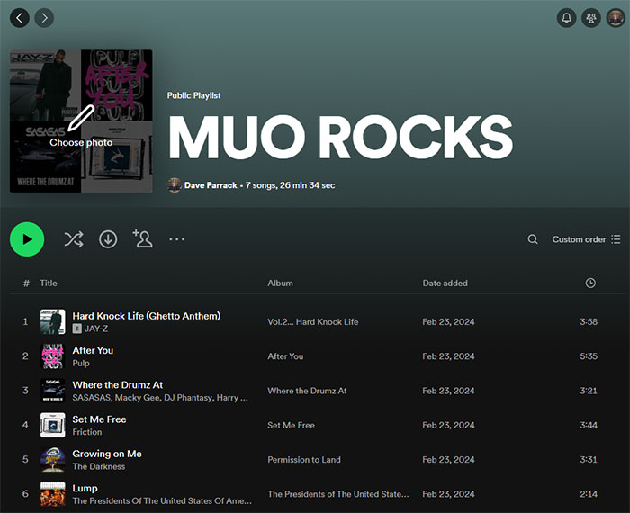 Để thay đổi hình ảnh danh sách phát trên thiết bị di động, hãy chọn một trong các danh sách phát và nhấp vào ba dấu chấm dọc để mở menu. Nhấp vào Chỉnh sửa danh sách phát, sau đó chọn Thay đổi hình ảnh. Ảnh có thể được chụp mới hoặc chọn từ thư viện ảnh của thiết bị.