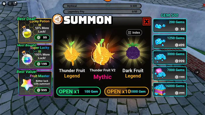 Để nhận được trái ác quỷ mới trong Fruit Reborn, hãy đến quầy Summon trên đảo chính. Trong menu Summon, người chơi có thể thấy những mục sau: