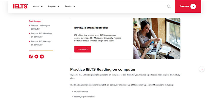 Trang web này là một nguồn hữu ích cho các sinh viên tương lai muốn học tập tại Canada, với thông tin về các địa điểm thi và sự chuẩn bị. IDP cũng cung cấp các bài kiểm tra thực hành có thể tải xuống cho cả kỳ thi tổng quát và học thuật.