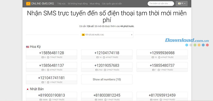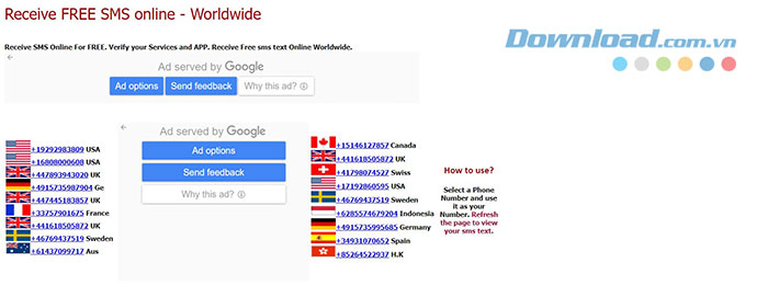 Online-SMS có tới hơn 70 số đến từ 14 quốc gia như Hoa Kỳ, Canada, Vương quốc Anh, Bỉ, Pháp, Ba Lan, Thụy Điển, Bồ Đào Nha, Ý, Áo, Thụy Sĩ, Tây Ban Nha, Đan Mạch. Tuy nhiên có thể nhiều số sẽ không động và thời gian tin nhắn tới nơi sẽ khá lâu.