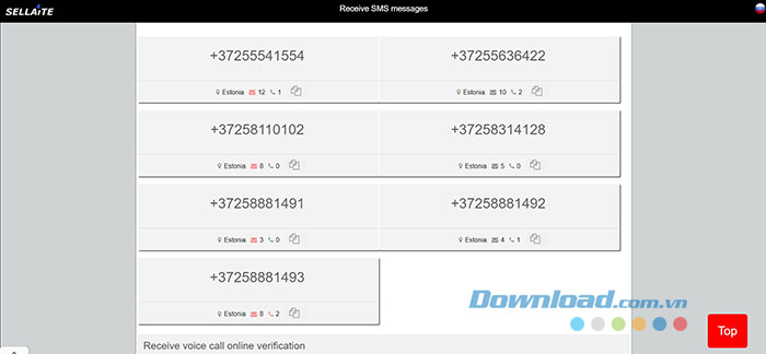 Sellaite SMS Receiver sử dụng 3 số điện thoại từ Estonia (mã quốc gia +372), hoạt động nhanh chóng trong việc gỡ bỏ các số ngoại tuyến và thay thế chúng bằng các số đang hoạt động.