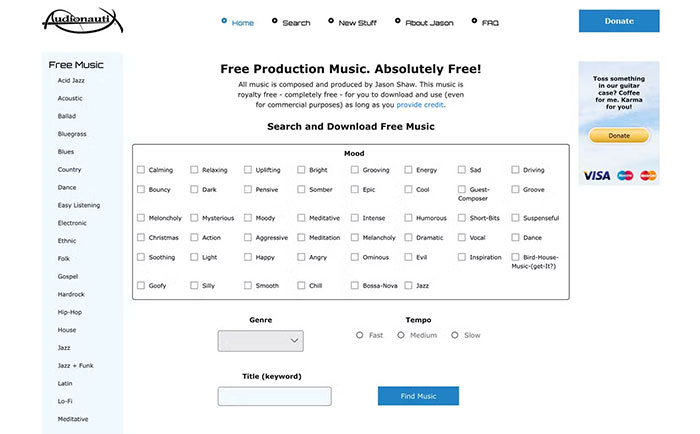 Audionautix là một trang web cung cấp rất nhiều bản nhạc miễn phí bản quyền mà bất kỳ ai cũng có thể sử dụng. Mọi người có thể tìm kiếm theo tâm trạng, thể loại, nhịp độ hoặc từ khóa và chỉ cần nhấn nút tải xuống trên thứ mình thích. Người dùng không cần đăng ký mà chỉ cần ghi nguồn, mang đến một nguồn tài nguyên tuyệt vời cho âm nhạc miễn phí.