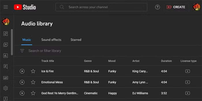 Nếu đang tìm kiếm nhạc miễn phí không vi phạm bản quyền cho video YouTube của mình, YouTube Audio Library là một trong những nơi tốt nhất để bắt đầu. Người dùng chỉ cần có tài khoản YouTube để truy cập vào thư viện, nơi lưu trữ hơn 1000 bản nhạc và 300 hiệu ứng âm thanh.
