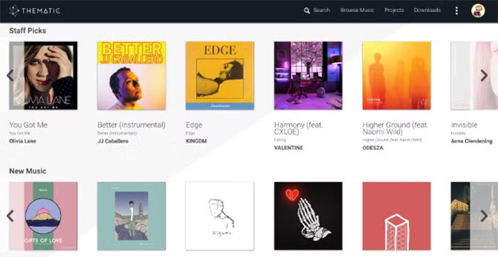 Thematic là dịch vụ mà hầu hết những người sáng tạo nội dung trên YouTube nên tìm kiếm để có được những bài hát miễn phí từ các nghệ sĩ và nhạc sĩ nổi tiếng. Để có quyền truy cập, người dùng sẽ cần đăng kts trở thành thành viên của Thematic. Sau khi trở thành thành viên, người dùng sẽ được xem toàn bộ danh mục nhạc của Thematic, cung cấp quyền truy cập vào các bản nhạc của một số nhạc sĩ nổi tiếng.