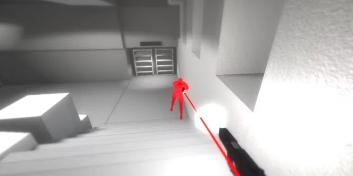 Game thủ có thể tận dụng lợi thế này để né tránh đạn và dành thời gian nhặt vũ khí. Kẻ thù xuất hiện dưới dạng những người màu đỏ, sẽ vỡ thành nhiều mảnh khi bị bắn trúng. Phiên bản Superhot trên trình duyệt không có nhiều cấp độ như trò chơi đầy đủ, nhưng nó vẫn thú vị.