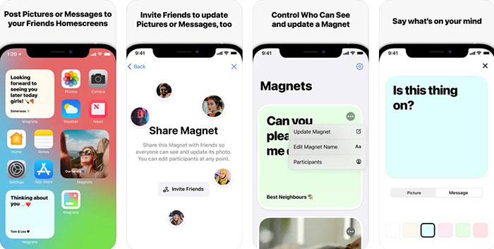 Mỗi Magnet có một tên và sau khi chia sẻ Magnet này, tất cả bạn bè có thể nhìn thấy nó với tên được gắn thẻ ở góc dưới bên trái của tiện ích. Người dùng có thể chọn một trong những ảnh muốn tiện ích hiển thị bất cứ lúc nào bằng cách nhấn vào tiện ích và kéo ảnh mong muốn lên đầu chồng ảnh được chia sẻ. Điều thú vị là thay đổi này cũng sẽ hiển thị trên widget của bạn bè.