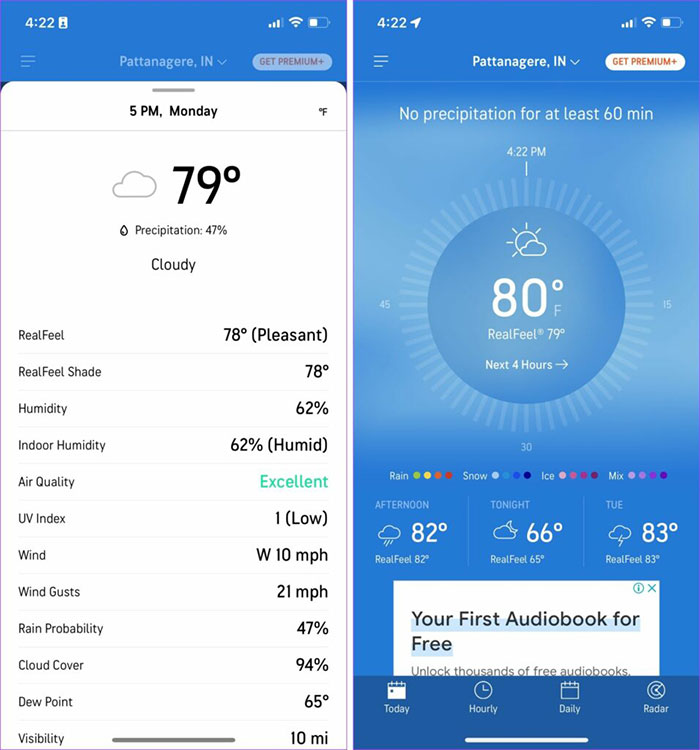 Phiên bản trả phí sẽ loại bỏ quảng cáo và thêm các tính năng như dự báo hàng ngày trong 10 ngày, AQI và các tiện ích cho màn hình chính. Tuy nhiên, 1Weather có một số vấn đề với các widget và thêm nhiều vị trí trong ứng dụng. Dù sao với giao diện người dùng tối ưu hóa, 1Weather vẫn là một ứng dụng dự báo thời tiết nên dùng.