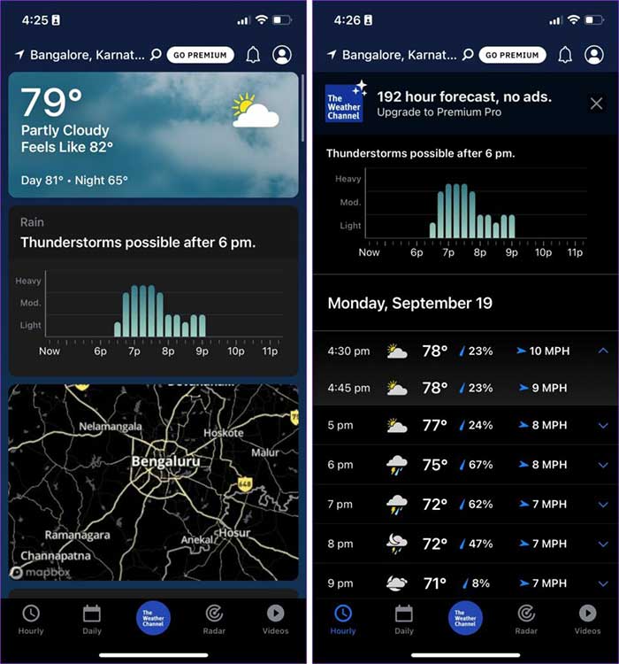 Với phiên bản cao cấp, người dùng có thể thêm widget vào màn hình chính trên iOS 16, cùng với việc loại bỏ quảng cáo. Nó cũng cho phép thêm mặt đồng hồ vào Apple Watch, tích hợp các ứng dụng thời tiết khác như dự báo thời tiết của Apple và AccuWeather để biết thông tin thời tiết chính xác hơn.
