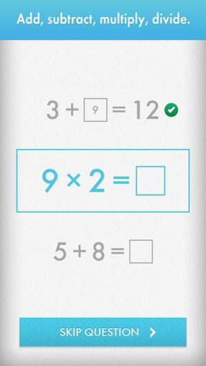 Người dùng phải chọn 1 trong 7 kỹ năng: 4 kỹ năng đầu tiên bao gồm 4 phép tính (cộng, trừ, nhân và chia); 2 tùy chọn tiếp theo cho phép thực hành kết hợp cộng/trừ hoặc nhân/chia; tính năng cuối cùng kết hợp cả 4 phép tính.