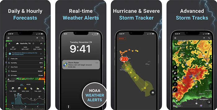 Bản đồ radar toàn màn hình có thể được tùy chỉnh hiển thị nhiều loại dữ liệu như: hướng gió tầng mặt đất và tầng cao, động đất, ranh giới thời tiết, dữ liệu xoáy nhiệt đới… Một tính năng khác của Storm Radar là thông báo khi có mưa hoặc sét trong phạm vi khoảng 16km quanh người dùng.