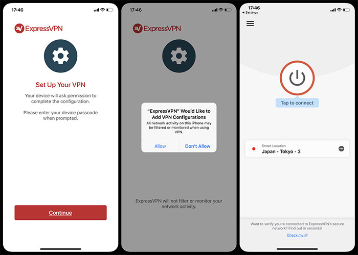 Cả ứng dụng dành cho iOS và Android đều cài đặt đơn giản và sau giây khi cấp quyền hệ thống, người dùng sẽ được bảo vệ thiết bị của mình. Một tính năng thú vị khác của ExpressVPN là khả năng chuyển đổi máy chủ chỉ bằng một lần nhấn mà không cần đóng kết nối hiện tại.