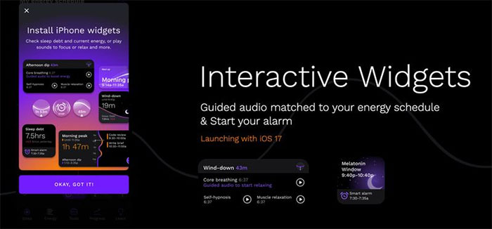 Ứng dụng theo dõi giấc ngủ Rise có các tiện ích được sử dụng để quản lý báo thức và âm thanh khi ngủ mà không cần mở ứng dụng. Ứng dụng này cũng bao gồm tính năng theo dõi mức độ tiếp xúc với ánh sáng ngoài trời để xem nó có ảnh hưởng đến giấc ngủ hay không.
