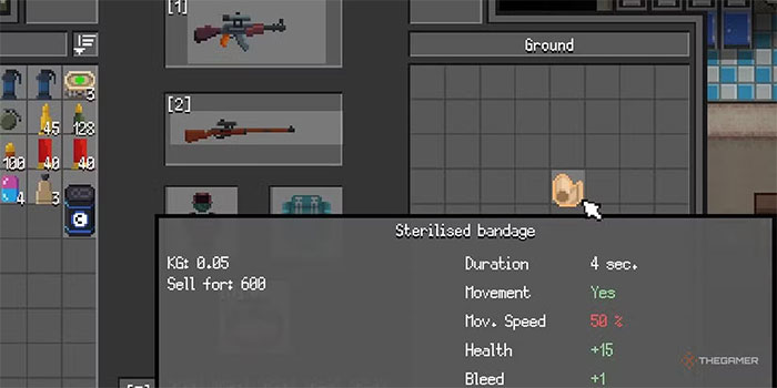 Vật phẩm cơ bản đầu tiên mà người chơi chắc chắn sẽ cần, Sterilised Bandages rất dễ làm và sử dụng nhanh. Chúng không giúp chữa lành nhiều, nhưng rất hữu ích trong việc cầm máu. Mặc dù Sterilised Bandages có thể không loại bỏ toàn bộ debuff chảy máu, nhưng chúng vẫn có thể làm giảm chảy máu một cách hiệu quả.