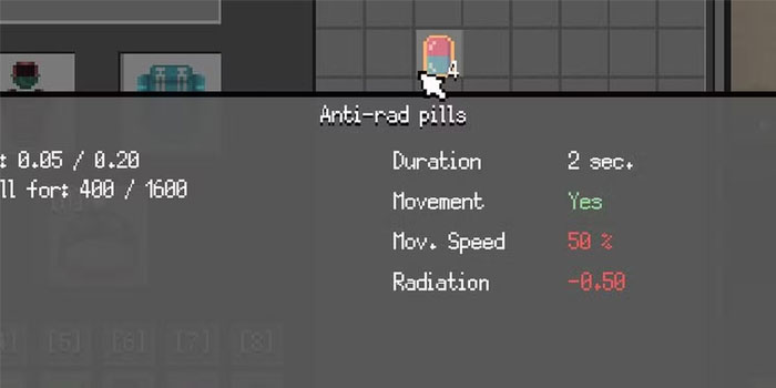 Một vật dụng khác phải có khi lang thang quanh Zakov, Anti-Rad Pills sẽ ngăn chặn bức xạ khó chịu. Giống như băng cứu thương, chúng cực kỳ rẻ và dễ làm vì game thủ chỉ cần 5 viên Scrap Medicine. Chúng cũng nhanh chóng sử dụng khi nhân vật đang chạy xung quanh.