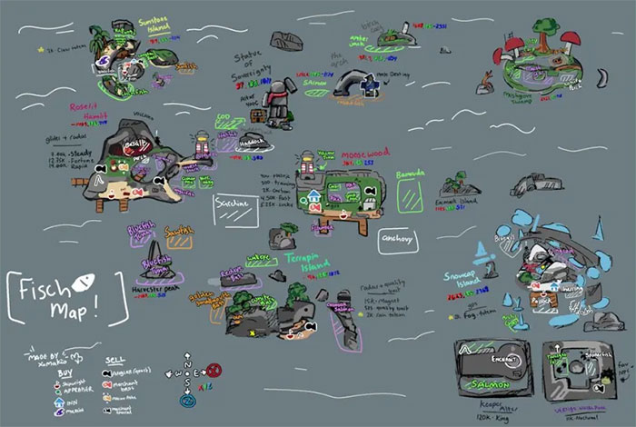 Mặc dù Enchant Relic có thể được tìm thấy ở bất cứ đâu, nhưng một số địa điểm nhất định đã tạo được danh tiếng trong cộng đồng người chơi vì đặc biệt hiệu quả. Những điểm này có thể không làm thay đổi tỷ lệ cơ bản của Enchant Relic, nhưng chúng mang lại điều kiện thuận lợi để câu và đa nhiệm hiệu quả. Dưới đây là những địa điểm thu thập Enchant Relic trong Roblox Fisch hàng đầu để người chơi thử vận may: