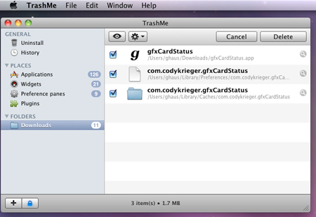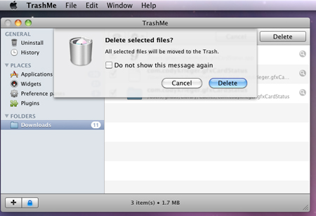 TrashMe là một ứng dụng nhỏ thú vị giúp nâng cao chức năng thùng rác của Mac OS X bằng cách thêm tùy chọn như xóa một số file có chọn lọc, xem trước tập tin trước khi xóa và phát hiện tự động các ứng dụng trước đó đã chuyển tới thùng rác.