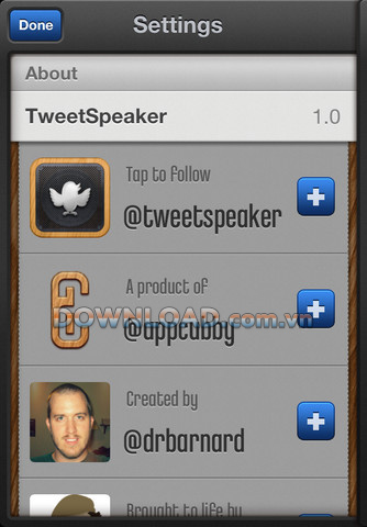 Tweet Speaker là ứng dụng cho phép người dùng nghe tin tức, tin thể thao, chuyện phiếm… của mọi người trên Tweeter – một loại file âm thanh phát trực tiếp cho Tweet.