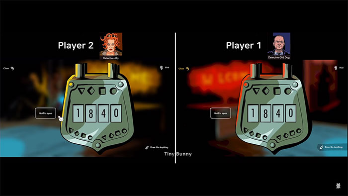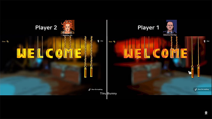 Nhìn vào những chữ cái treo trên chiếc rương bị khóa. Mọi người phải làm việc cùng nhau để sắp xếp thành WELCOME. Mỗi người chơi điều khiển một chữ cái và di chuyển chữ cái đó sẽ hoán đổi vị trí với chữ cái bên cạnh. Khi các chữ cái của hai người chơi va vào nhau, chúng sẽ tách ra xa nhau hơn. Dần dần sắp xếp lại các chữ cái theo đúng thứ tự.