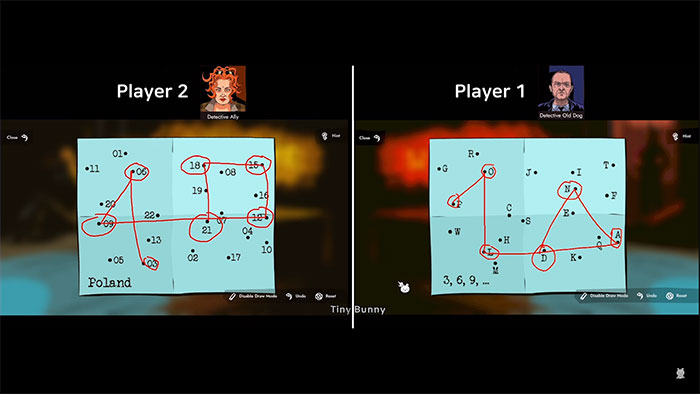 Mở những mảnh giấy gấp trên mặt đất. Old Dog sẽ có một dãy chữ cái và manh mối 3, 6, 9. Ally sẽ có một dãy số và manh mối Poland. Old Dog nên vẽ một đường thẳng qua đường dẫn này: P, O, L, A, N, D để lộ số 1 và một hình tam giác. Đồng đội nên vẽ một đường thẳng qua đường 3, 6, 9, 12, 15, 18, 21 để lộ số 4 và một hình vuông.