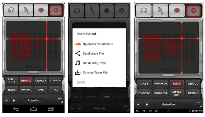 RoboVox Voice Changer là một ứng dụng Android cho phép sửa đổi giọng nói trực tiếp hoặc đã qua ghi âm thành tất cả các loại giọng nói khác nhau. Thư viện của nó có tổng cộng 48 âm thanh và hiệu ứng, từ vui nhộn đến đáng sợ. Đây là một ứng dụng thay đổi giọng nói tuyệt vời khác cho mục đích chơi game.