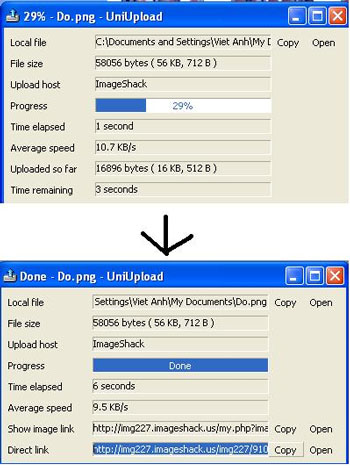 Ngoài ra công dụng thứ 2 của chương trình là Upload nhanh ảnh lên Imageshack, chỉ cần làm như trên đối với file ảnh.