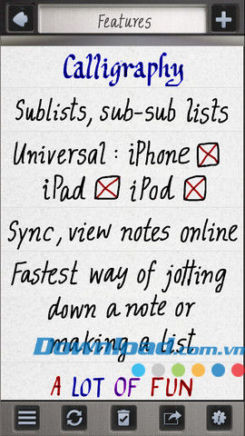 Ứng dụng Use Your Handwriting Gold for iOS tuyệt đẹp được kết hợp cùng một bộ các tính năng mạnh mẽ: tạo danh sách con, âm báo nhanh, ghi chú với độ dài không giới hạn cùng nhiều tiện ích chờ người dùng khám phá.