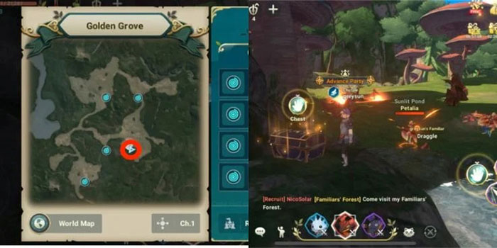 Bây giờ, nhấn World Map và sau đó người chơi sẽ thấy Golden Grove ở rìa phía đông của bản đồ, ngay bên cạnh Serene Forest. Chọn một trong các điểm ưa thích hoặc một điểm ngẫu nhiên trên bản đồ để tự động đi bộ đến đó. Sử dụng Mount có thể rút ngắn thời gian di chuyển.